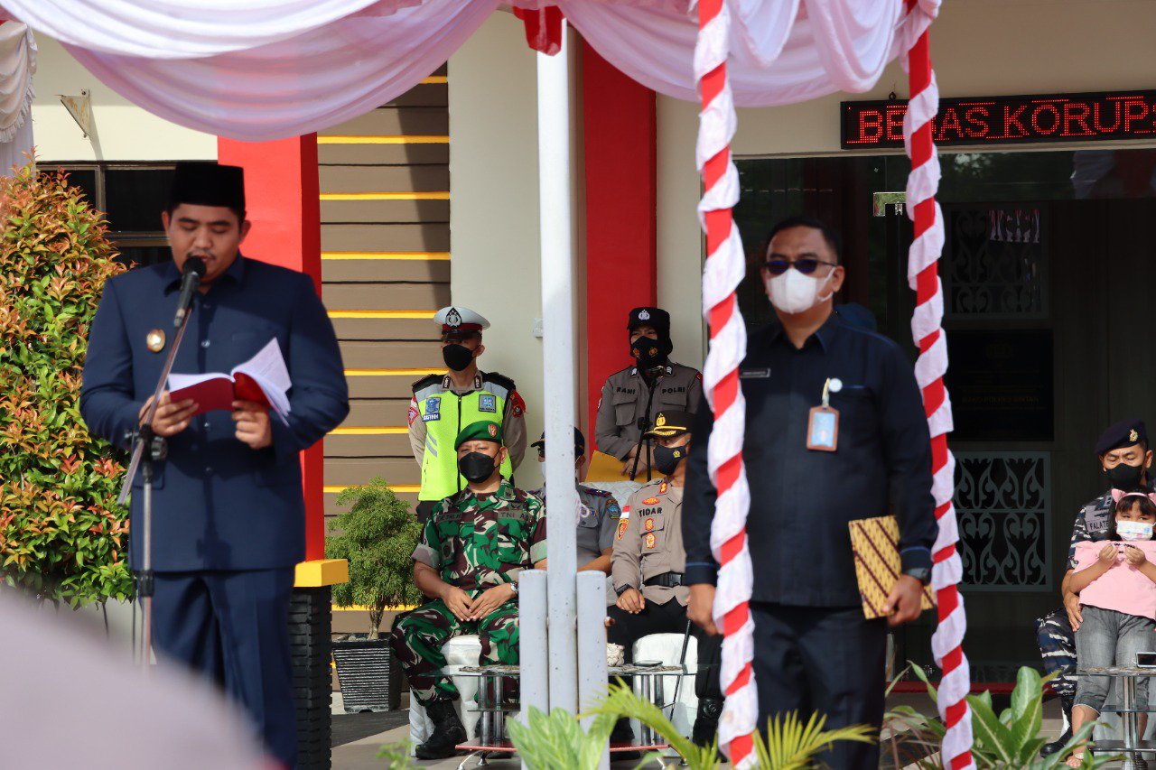 Plt Bupati Bintan Roby Kurniawan sebagai Inspektur Upacara pada gelaran Apel Pasukan Operasi Ketupat Seligi Tahun 2022 Kepolisian Resort Bintan, Jumat (22/04). Foto: Dok Kominfo (1600 pixel)