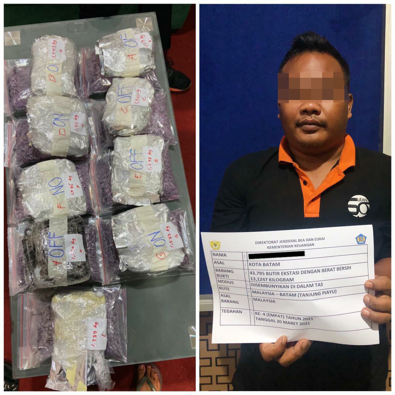 “Pada hari Jumat, 19 Maret 2021 Tim Gabungan KPU dan PSO BC Batam, Subdit Narkotika serta Bareskrim Mabes Polri mendapat informasi bahwa akan ada upaya penyelundupan narkotika jenis ekstasi ke wilayah Batam,” kata Kepala Kantor Bea dan Cukai Batam, Susila Brata, Kamis (25/3/2021).