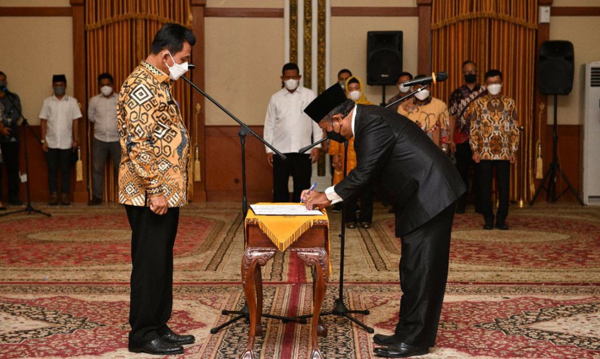 Kepala Bakesbangpol Ir. Lamidi dan Kepala BKD dan Korpri menjadi saksi dalam pengambilan sumpah jabatan dan pelantikan Pj. Sekdaprov tersebut.