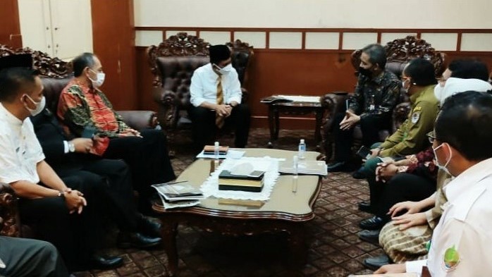 Gubernur Provinsi Kepulauan Riau, Ansar Ahmad, menerima Kepala Bada Restorasi Gambut dan Mangrove Republik Indonesia (BRGM RI), Hartono, berserta segenap pejabat teras BRGM di Gedung Daerah, Kota Tanjungpinang, Senin (26/4/2021). (Foto: Istimewa)