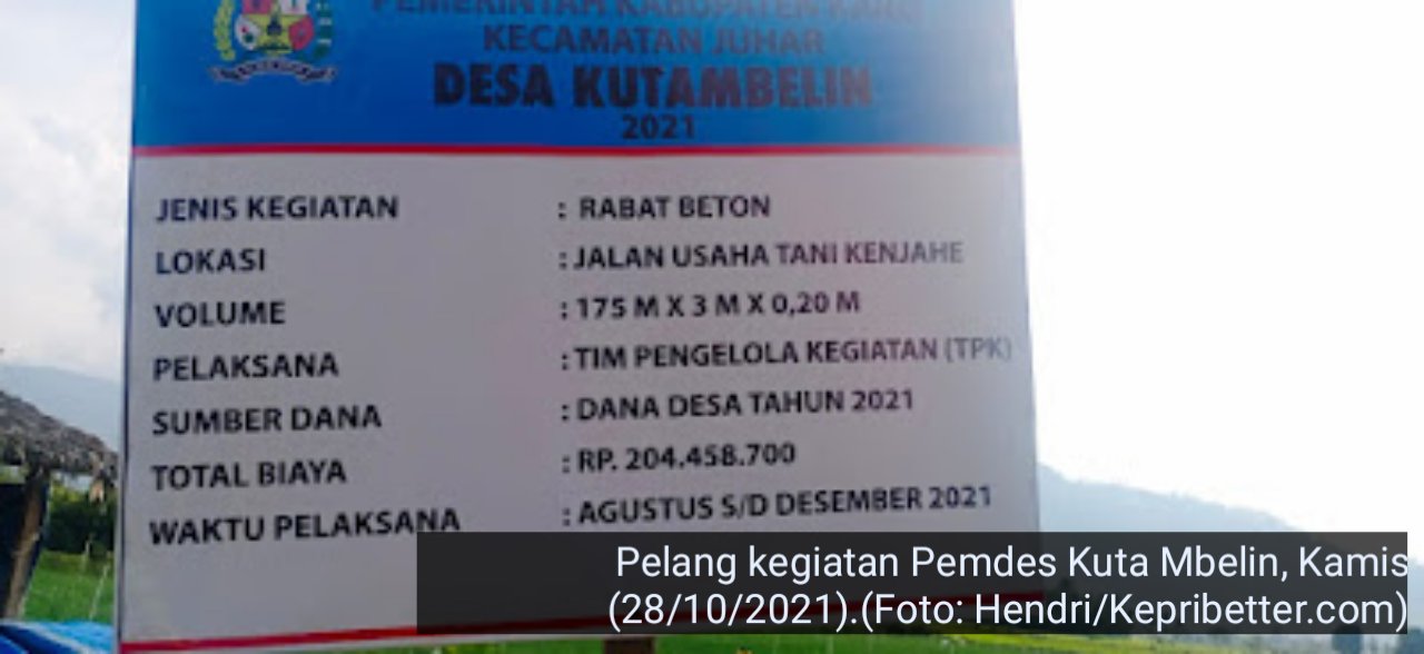 KEPRIBETTER.COM, Karo – Pemerintah Desa (Pemdes) Kutambelin, Kecamatan Juhar, Kabupaten Karo , membangun infrastruktur jalan desa berupa Rabat Beton dengan mengunakan sumber Dana desa tahun 2021.