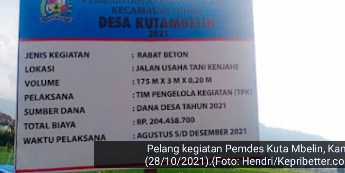 KEPRIBETTER.COM, Karo – Pemerintah Desa (Pemdes) Kutambelin, Kecamatan Juhar, Kabupaten Karo , membangun infrastruktur jalan desa berupa Rabat Beton dengan mengunakan sumber Dana desa tahun 2021.