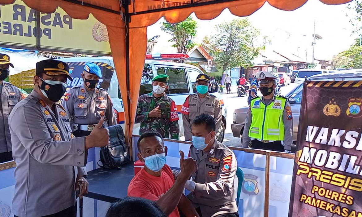 KEPRIBETTER.COM, Pamekasan – Guna mendukung percepatan Vaksinasi untuk mewujudkan Herd Immunity. Polres Pamekasan menggelar vaksinasi mobile Presisi atau keliling untuk mempermudah masyarakat mendapatkan vaksinasi secara gratis.
