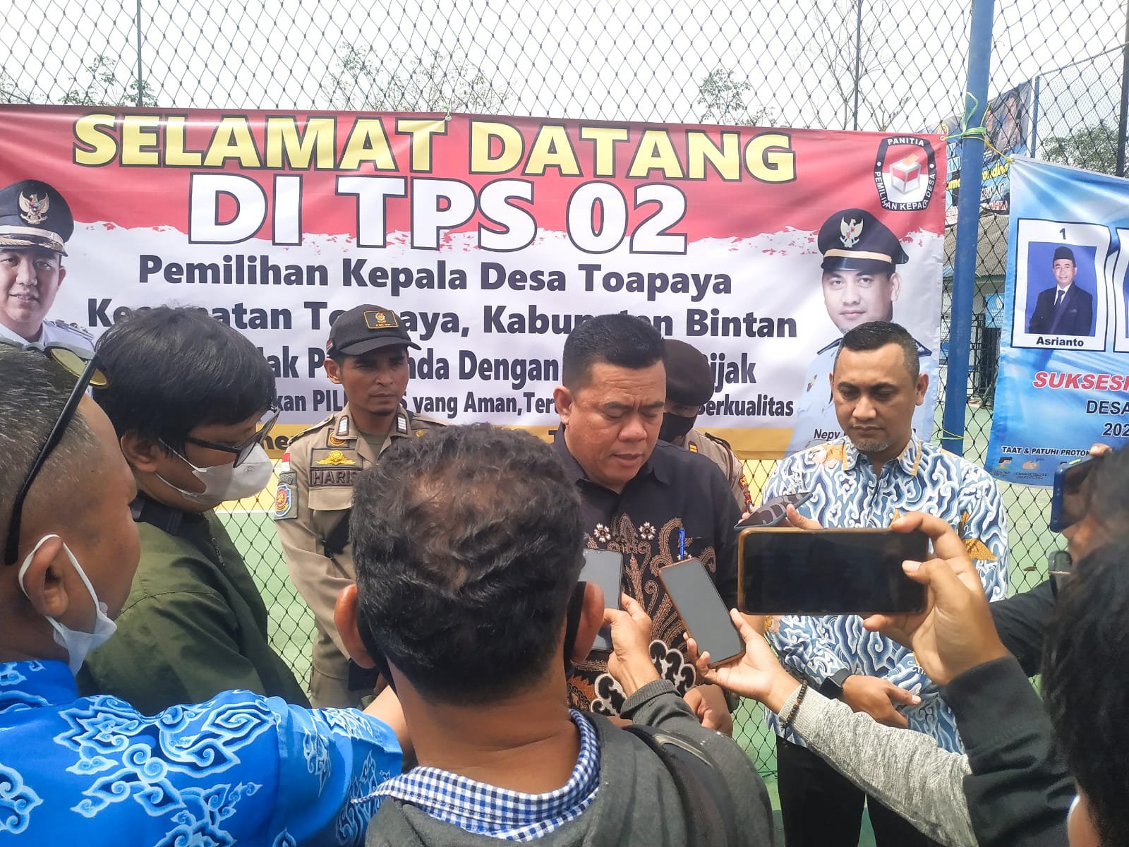 KEPRIBETTER.COM, Bintan – Pemilihan Kepala Desa (Pilkades) secara serentak bergelombang di 21 Desa yang ada di Kabupaten Bintan telah memasuki tahap puncaknya dimana masyarakat akan menentukan pilihan terhadap calon-calon terbaik. Pj Sekda Bintan Rony Kartika pun langsung turun ke lapangan memastikan bahwa proses pemungutan suara berjalan dengan lancar dan damai.