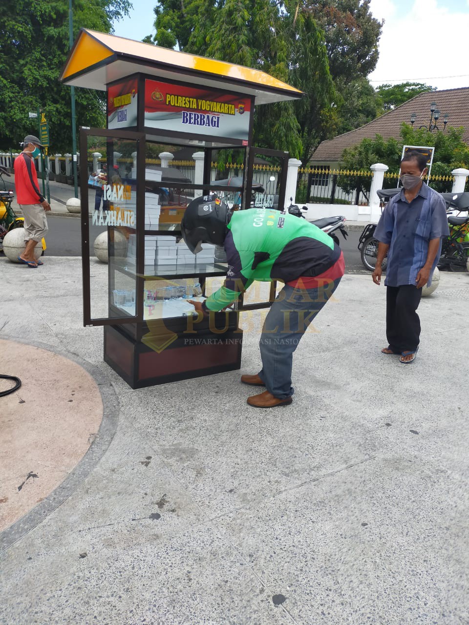 Pembagian ratusan nasi kotak gratis ini, diperuntukan aparat kepolisian setempat untuk masyarakat mulai dari kalangan pengemudi becak, pengemudi andong, pedangan asongan, pedagang kaki lima dan tukang ojek serta pengunjung di kawasan Malioboro, Kota Yogyakarta, Provinsi DIY yang diletakan di dua lemari pada 2 lokasi berbeda.